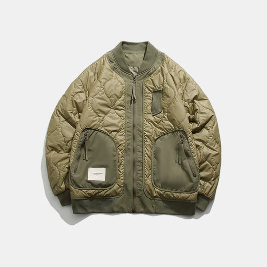 Contrast Color Diamond Pattern Thick Warm Cotton Jacket