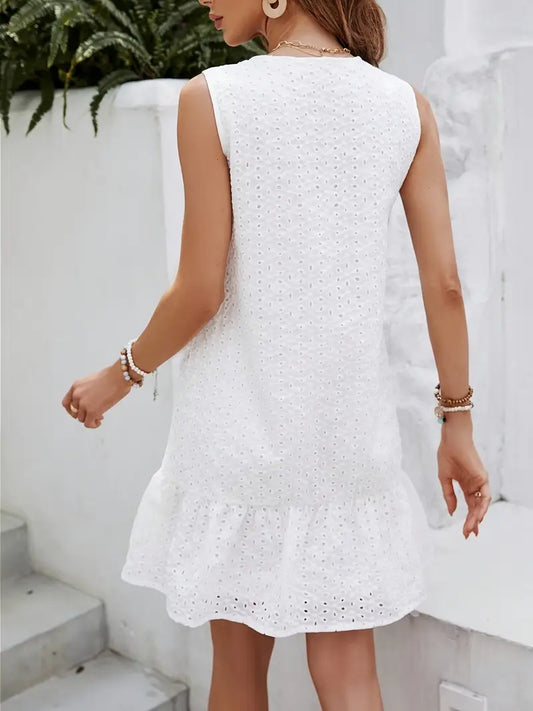 Aikaterini - Elegantes ärmelloses Baumwollkleid mit Taschen