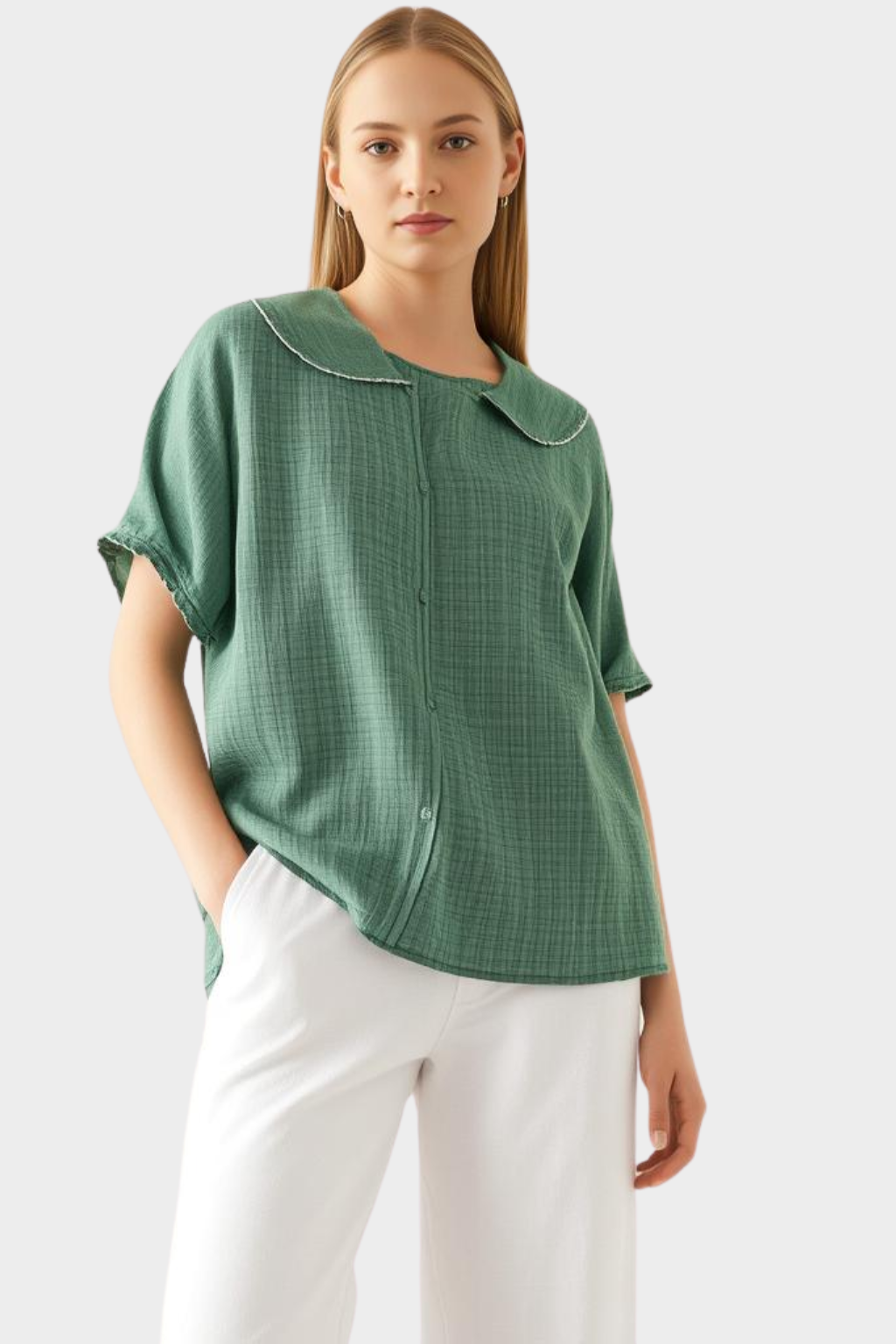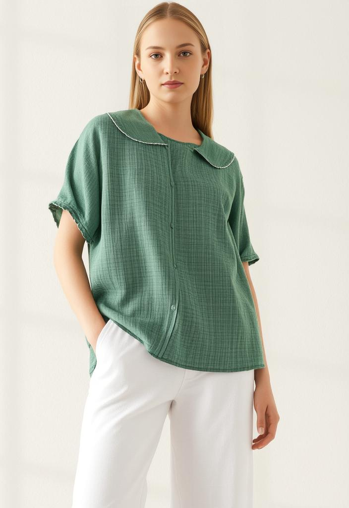Manche Kleidungsstücke sind mehr als nur ein Kleidungsstück - sie schenken Ihnen Seelenruhe, Bewegungsfreiheit und offensichtliche Eleganz. Adele ist eine solche Bluse. Mit ihrem federleichten Stoff, der luftigen Form und dem dezenten Kragen ist sie für Frauen gemacht, die sowohl Komfort als auch Ausdruck schätzen.