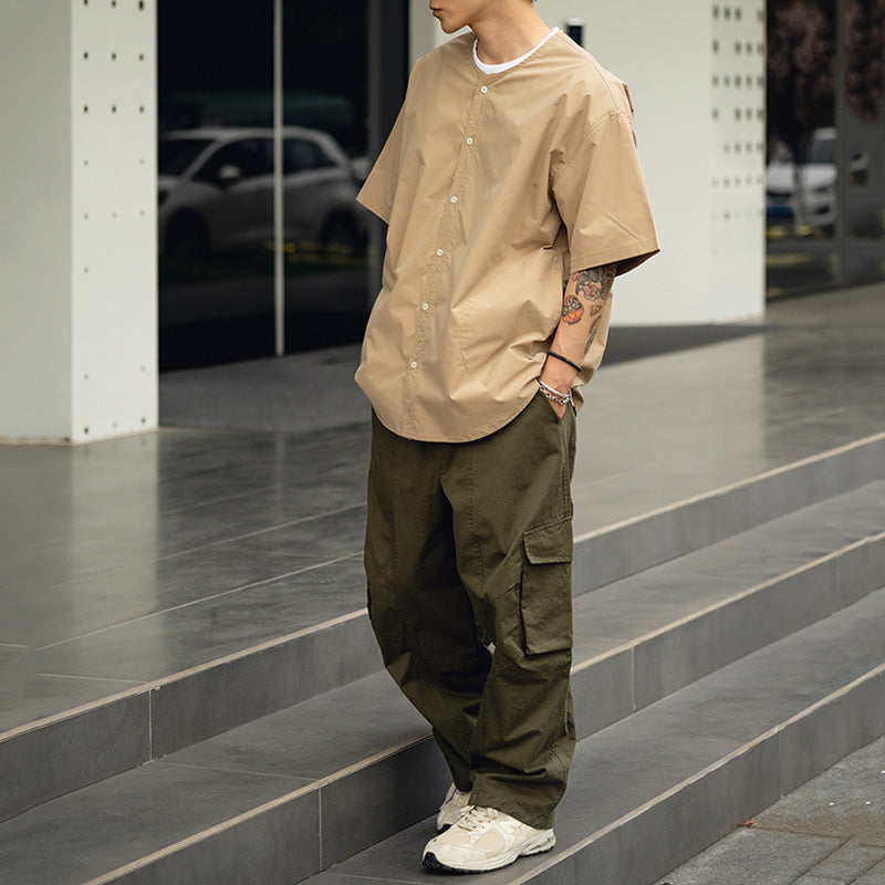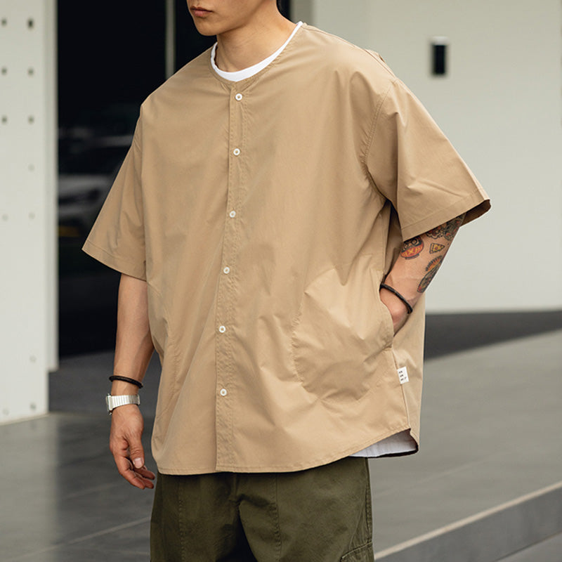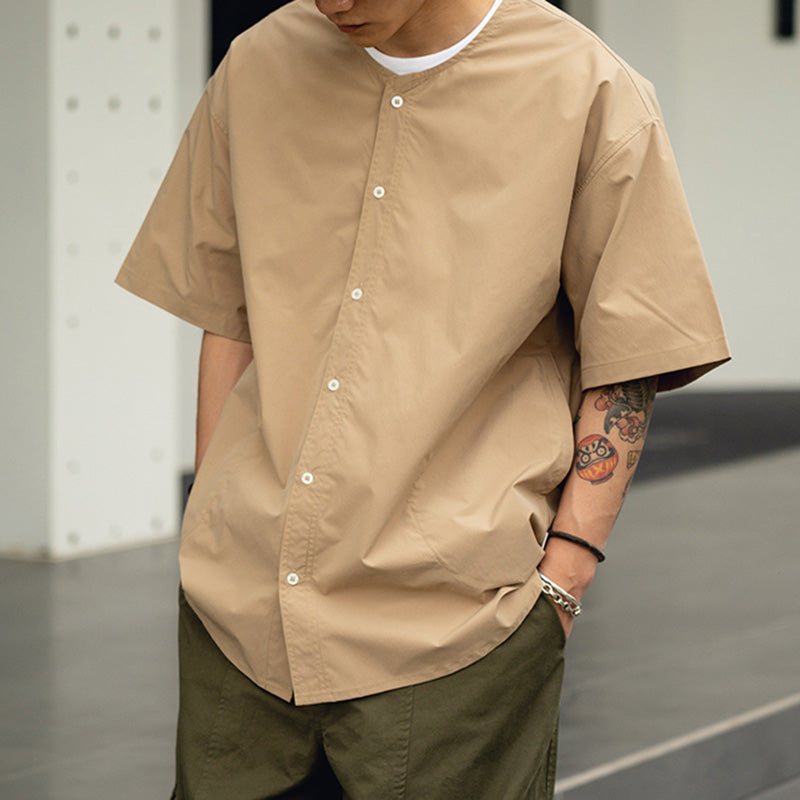 Kragenloses Vintage-Shirt mit kurzen Ärmeln