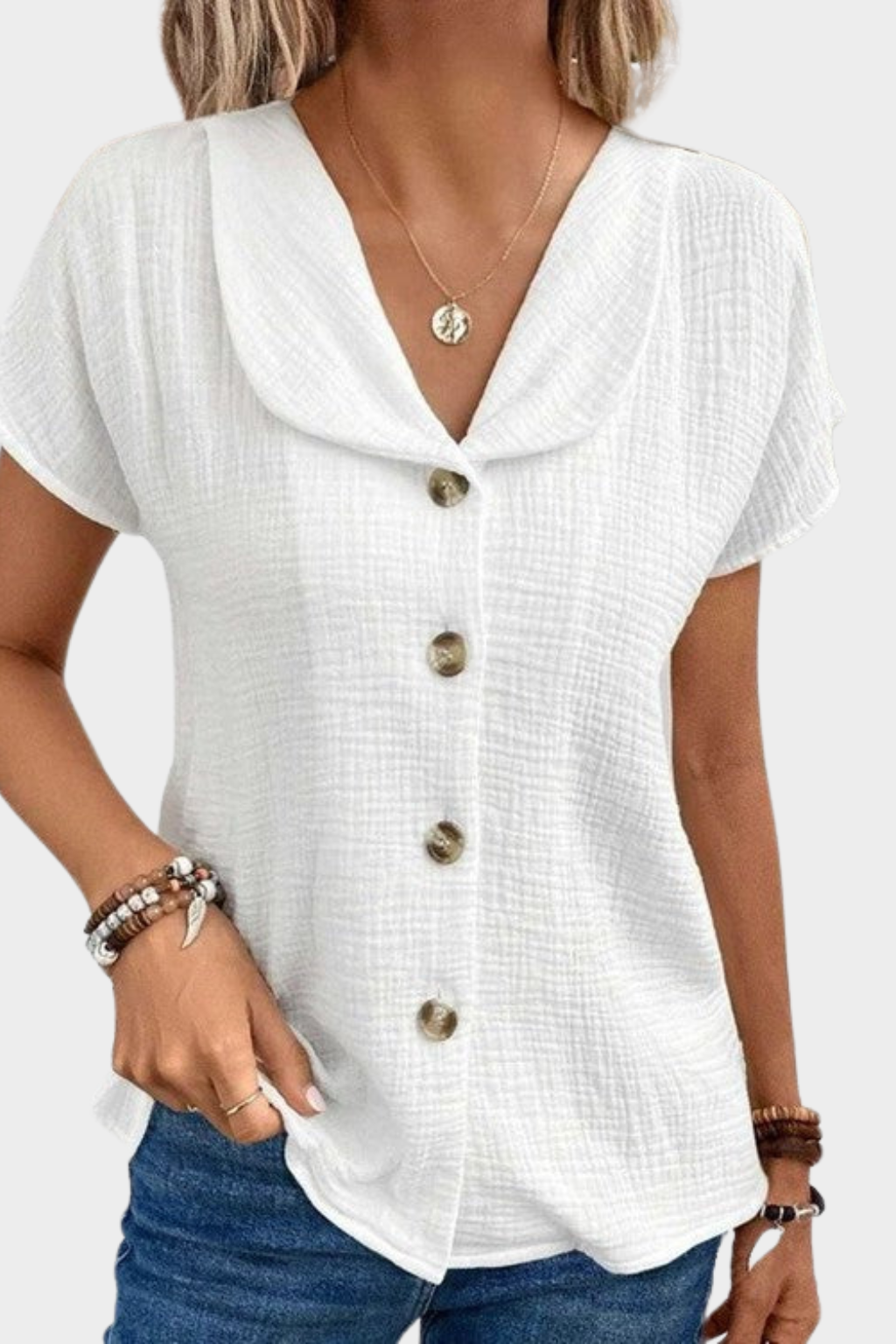 Ultimativer Komfort - Haben Sie Probleme, sich an heißen Tagen wohl zu fühlen? Das leichte und atmungsaktive Material des Ellen - Tops mit Kragen und Knöpfen hält Sie frisch und gemütlich, egal bei welcher Temperatur.