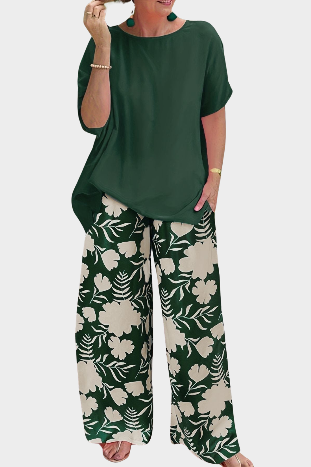 Genießen Sie mühelose Eleganz mit dem Gabriele Blumen-Set. Mit einem lässigen Oberteil und fließenden Blumenhosen ist dieses Set perfekt für sonnige Tage, legere Ausflüge oder sogar zum stilvollen Entspannen.