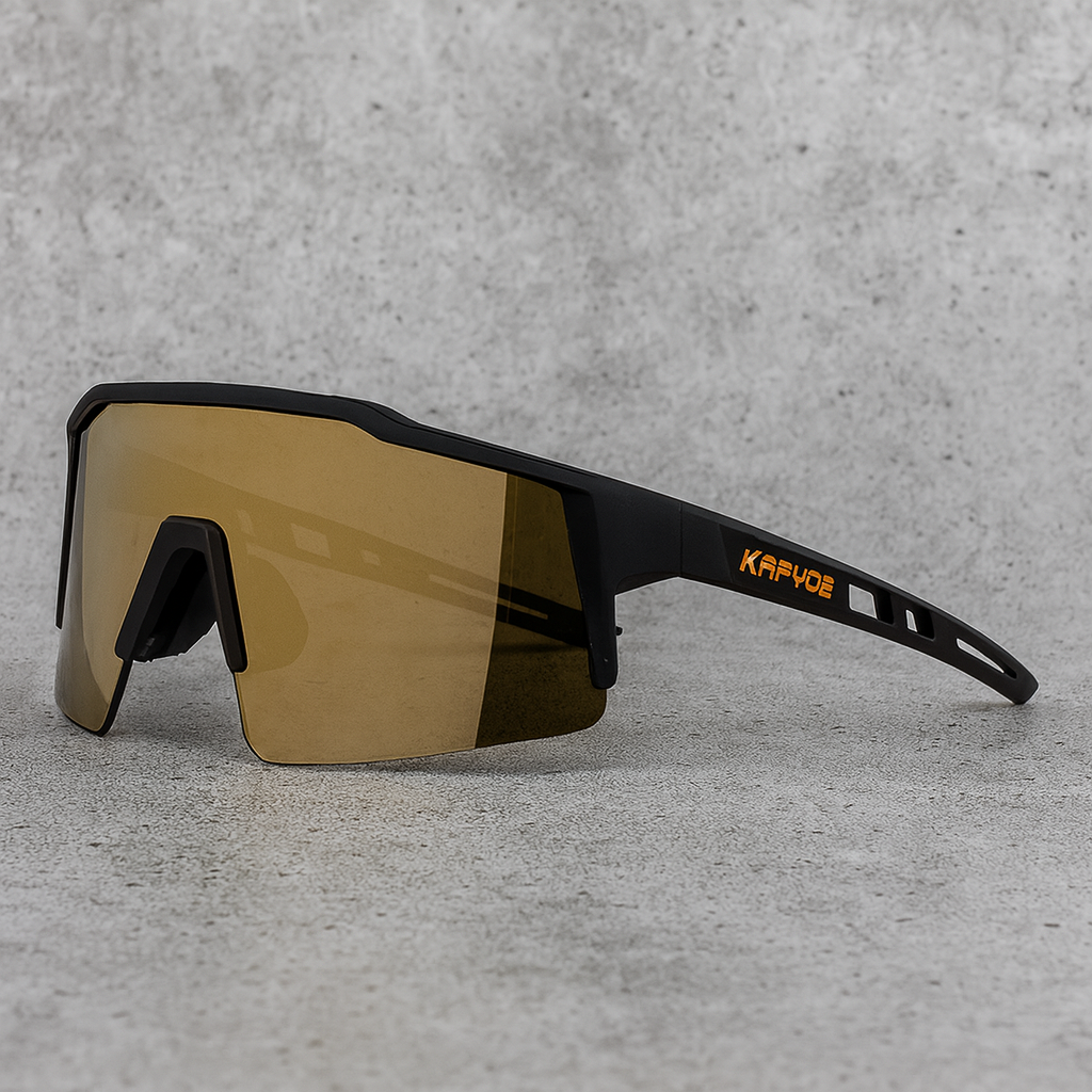 Die KAPVOE Radfahrerbrille kombiniert sportlich-elegantes Design mit funktionaler Vielseitigkeit. Sie ist in zahlreichen auffälligen Farbkombinationen erhältlich – von Rot-Schwarz über Gold-Schwarz bis hin zu Modell-Varianten mit transparenter Optik. Aktuell stark reduziert und bereits ausverkauft – ein echter Eyecatcher für Jung und Alt.