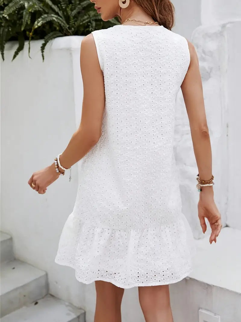 Das Kleid Lilianne steht für schlichte Einfachheit mit einem Hauch von Charme. Mit seiner luftigen Passform, dem mit Ösen versehenen Stoff und dem weichen, ausgestellten Saum bringt dieses Kleid Leichtigkeit und Selbstvertrauen in die warmen Tage des Jahres. Ganz gleich, ob Sie zum Strand, zum Brunch am Wochenende oder einfach nur in die Sonne gehen, Lilianne ist Ihr müheloser Favorit.