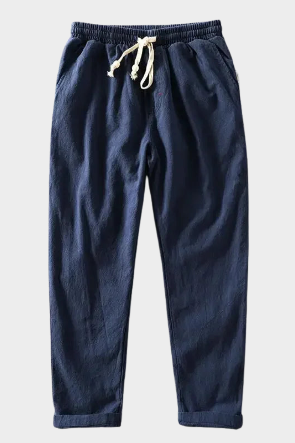 Die Massimo Leinenhose aus leichtem, atmungsaktivem Material sorgt für Komfort und mühelosen Stil. Die entspannte Passform und der verstellbare Kordelzug in der Taille gewährleisten einen perfekten, bequemen Sitz für den ganzen Tag.