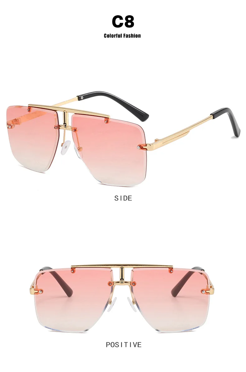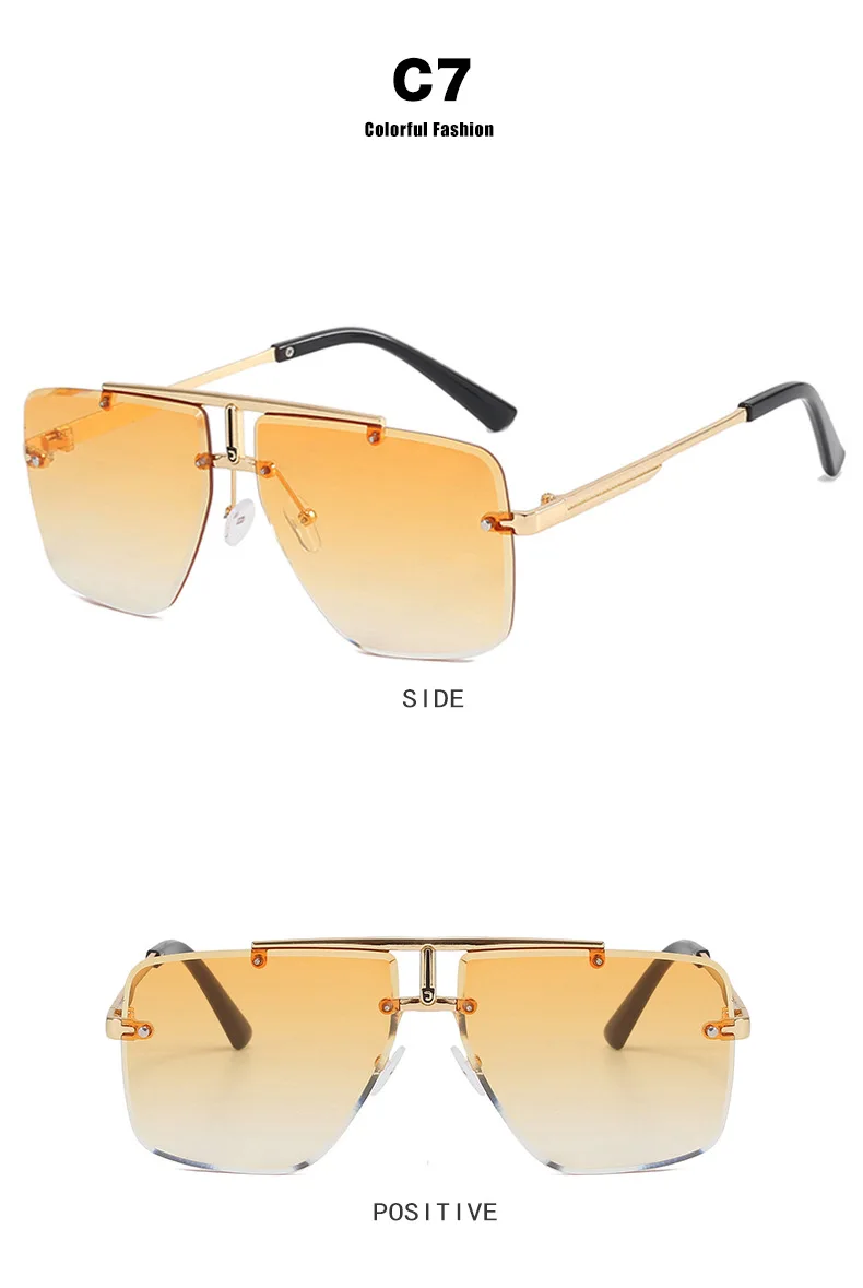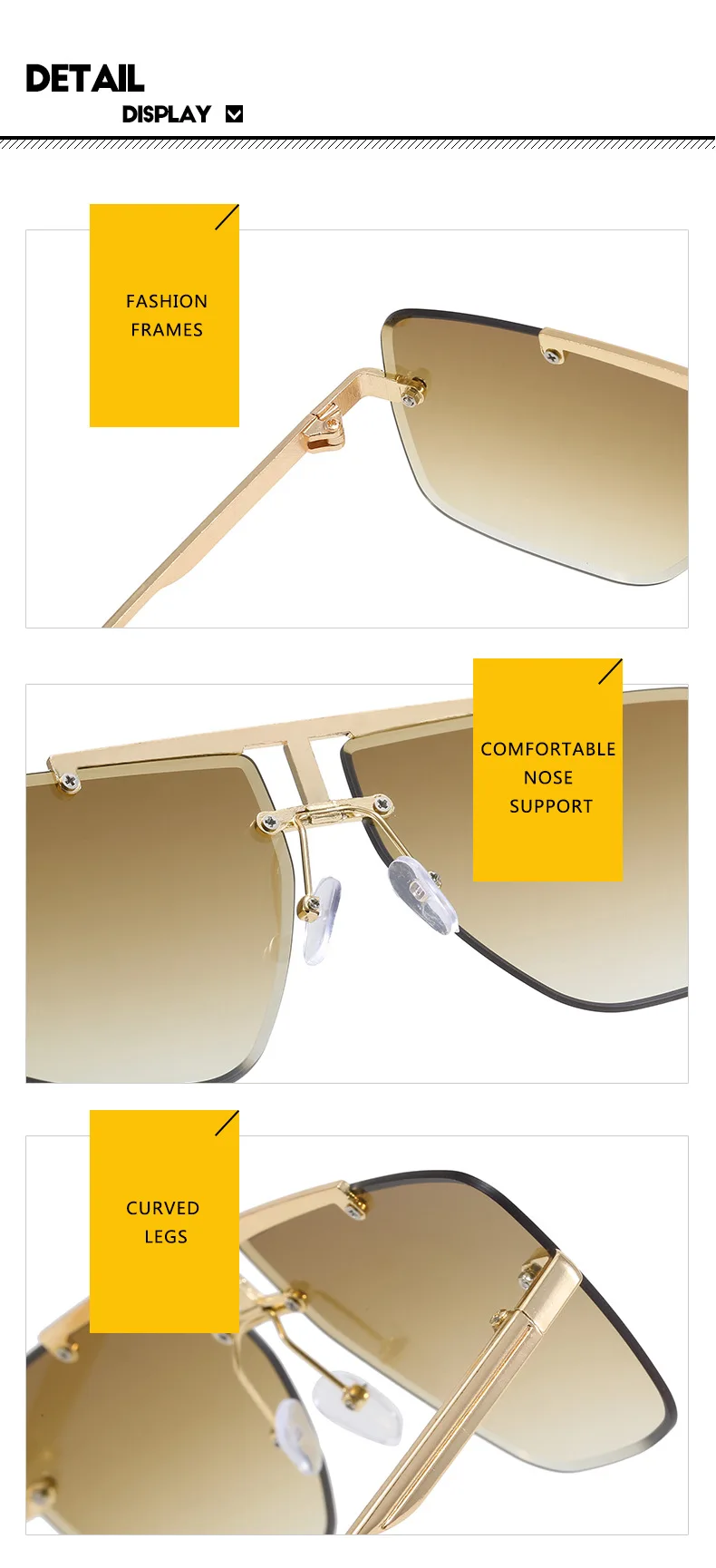 Diese stylische randlose Sonnenbrille mit Doppelstreben und quadratischem Design vereint moderne Eleganz mit mutigem Statement. Der elegante Look wird durch die feinen Doppelstreben besonders betont, während das randlose Design für maximale Leichtigkeit sorgt – perfekt für Upgrades im Alltag, im Urlaub oder bei besonderen Anlässen.