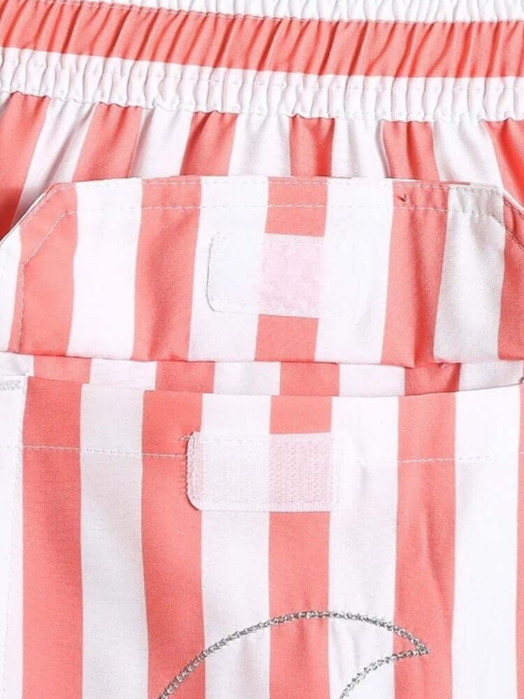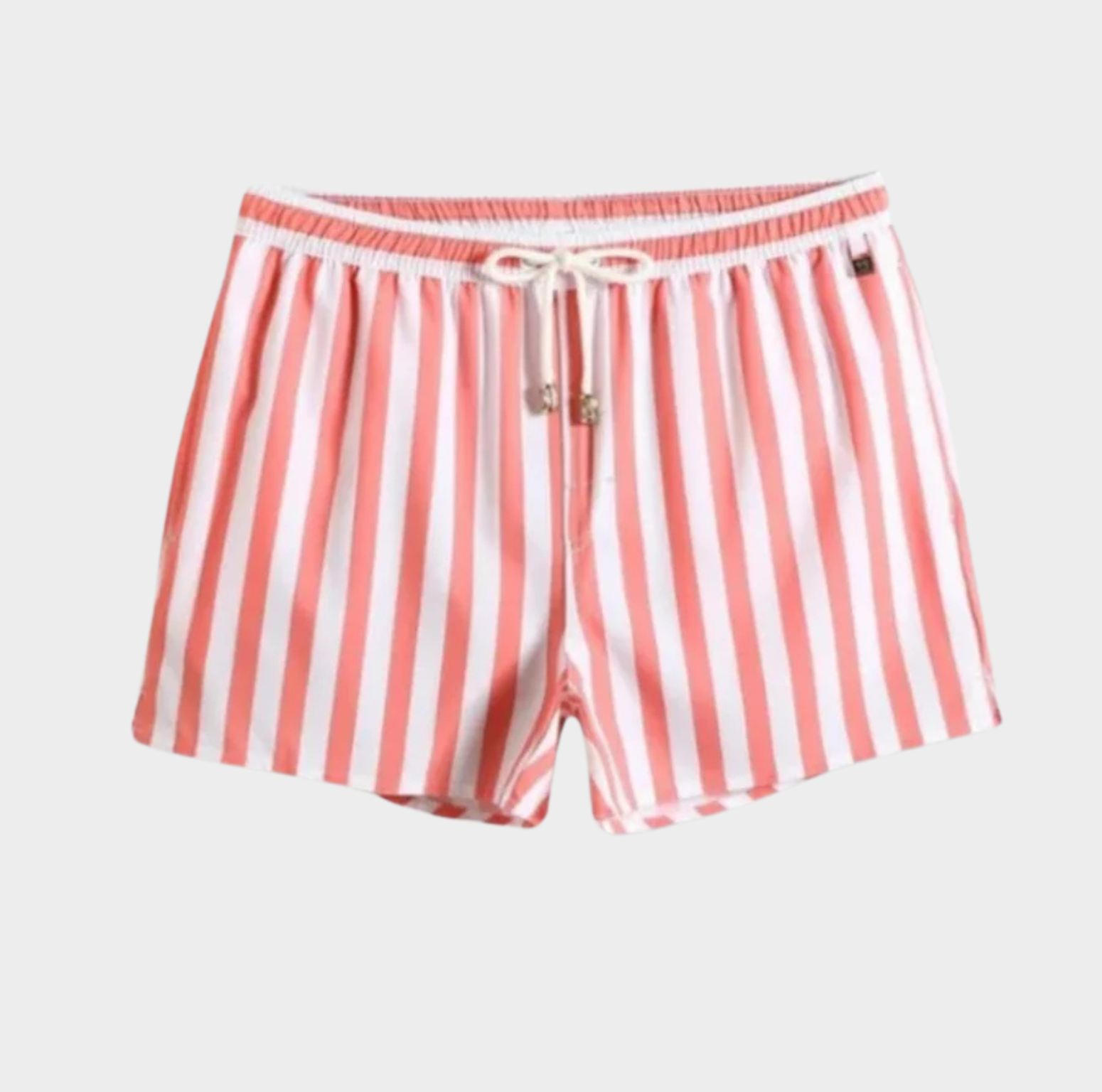 Erweitern Sie Ihre Bademodenkollektion mit unserer gestreiften roten Badeshorts Monaco. Hier trifft klassischer Stil auf moderne Funktionalität in perfekter Harmonie. Diese Badeshorts aus hochwertigem Polyester bieten eine bequeme Passform und eignen sich perfekt für Poolpartys und Strandtage. Ideal für alle, die zeitlose Ästhetik schätzen – dieses Must-have verleiht Ihrer Sommergarderobe einen lebendigen Touch.