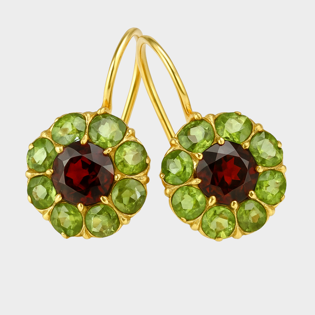 Abgerundete grüne und rote Kristall-Ohrringe im Vintage-Stil