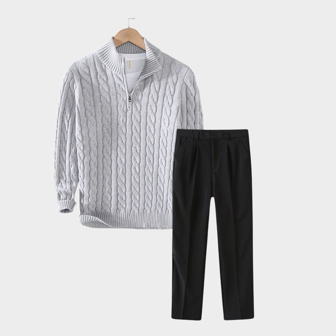 TAEBAEK Pullover mit Reißverschluss und Zopfmuster: Dieser sorgfältig aus hochwertigen Materialien gefertigte Pullover bietet unübertroffene Wärme und Raffinesse und ist damit ein vielseitiges Grundnahrungsmittel für jeden Kleiderschrank.