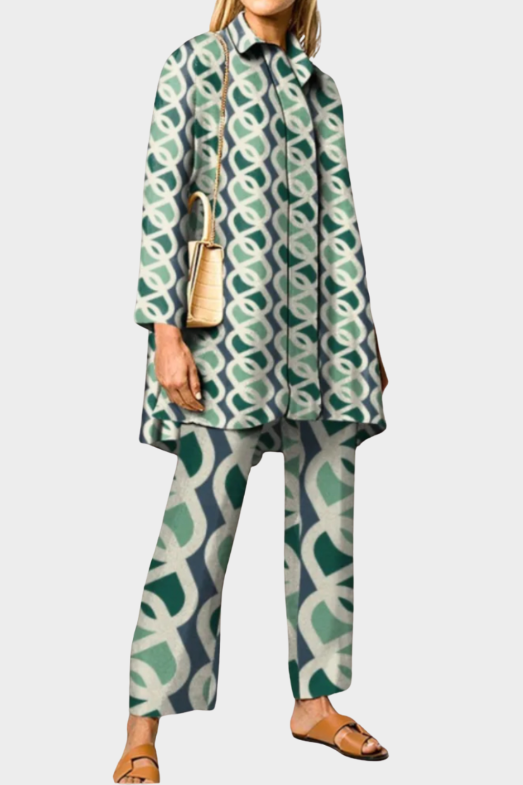 Sie suchen ein Outfit, das Stil und Komfort mühelos vereint? Unser beliebter Zweiteiler, eines der begehrtesten Ensembles der Saison, bietet eine fließende Silhouette und einen Vintage-Druck für einen raffinierten, entspannten Look. Perfekt für alle, die elegant auffallen und sich jederzeit wohlfühlen wollen.